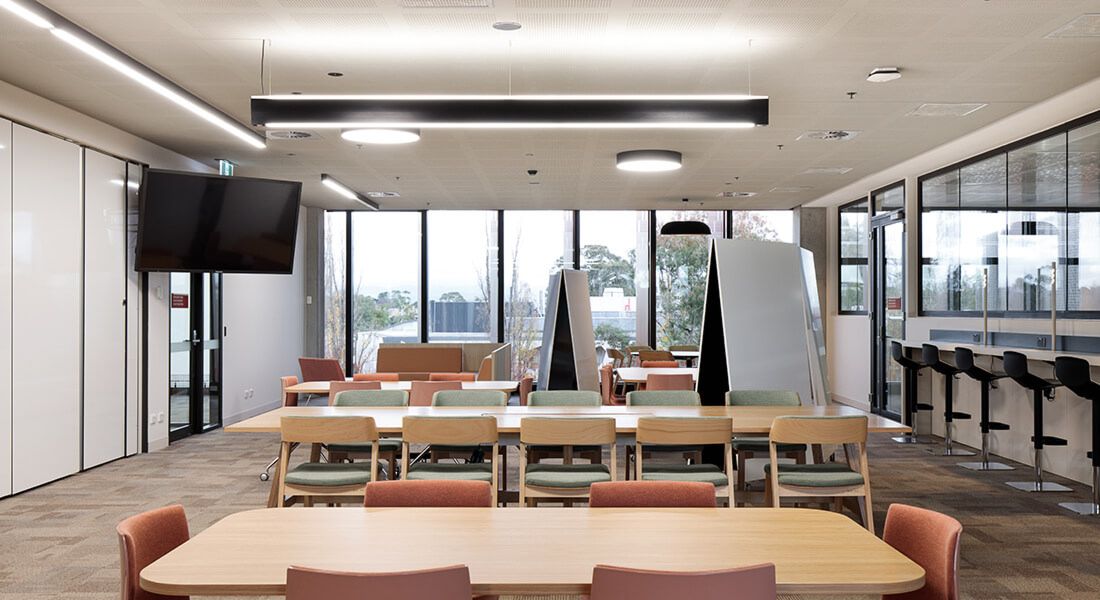 The result is an innovative hybrid of workplace, teaching and student hub that supports collaboration between disciplines and encourages agile teamwork. The building reflects ANU’s status as an international leader in these fields.