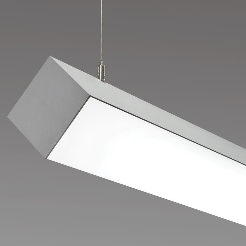 Noventa 3.5 is a suspended, wall/surface extrusion that creates an architectural 90 degree corner. For two-sided illumination around a perimeter, use a wall/surface model. Hang a suspended “L” model for illuminating a wall surface and to provide ambient downlight. Hang a suspended “diamond” model to provide a wide swath of direct ambient downlight.